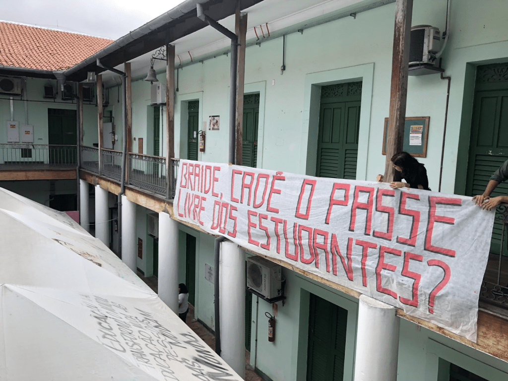 Ainda no mês passado, após uma assembleia realizada para mobilizar os estudantes da UFMA, os militantes do CEFP e seus apoiadores realizaram um ato dentro do Restaurante Universitário, entregando panfletos, estendendo faixas e chamando atenção dos universitários para discutir o Passe Livre.