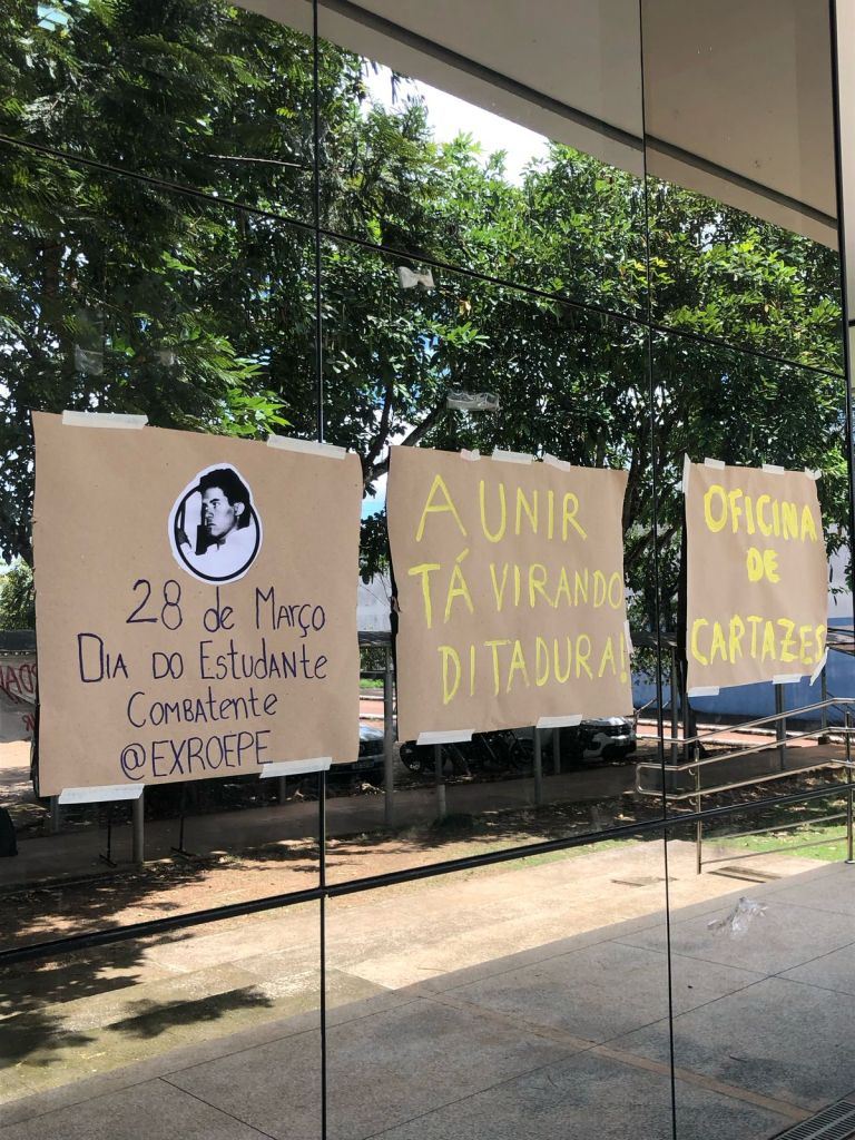 Como parte do chamado da ExNEPe, foi realizada a confecção de cartazes e uma mobilização na UNIR, campus Porto Velho, sobre um Código de Ética e Conduta que está em tramitação e que visa atacar diretamente o movimento estudantil organizado, com artigos que criminalizam manifestações, denúncias, críticas, além de impor restrições ao modo de se vestir dos estudantes e até mesmo ao que eles podem ou não postar em suas redes sociais. Foram distribuídos dezenas de panfletos e estendida uma faixa com os dizeres: “Contra a Lei da Mordaça! Abaixo a Censura na UNIR”. A atividade foi organizada pelo DCE da UNIR, em conjunto com a ExROEPe e centros acadêmicos dos cursos de Letras/Inglês, Geografia, Pedagogia, Jornalismo, Medicina, Psicologia, além de demais estudantes que apoiaram a manifestação.