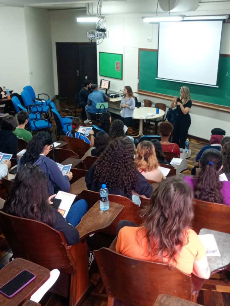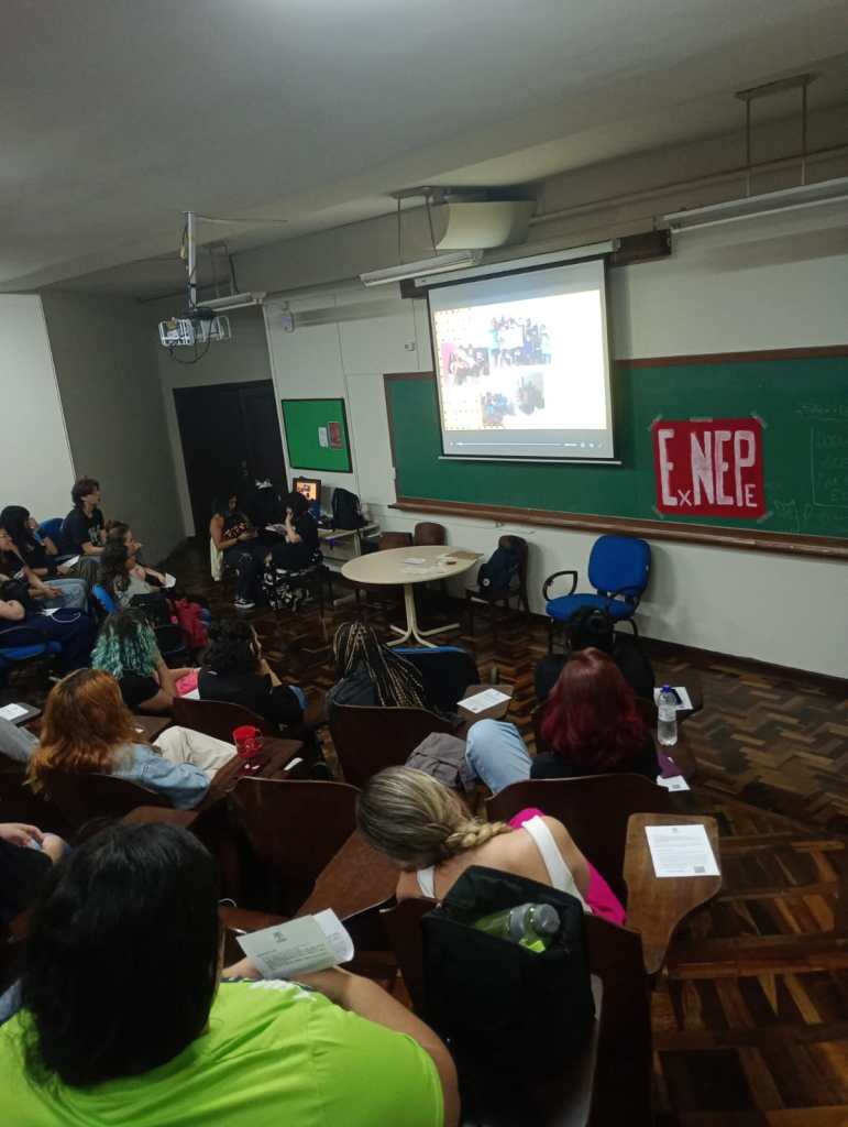 No dia 13/03 foi realizada uma apresentação da ExNEPe para os turnos da manhã e da noite com a participação da Presidente da entidade Ana Caroline e também da Ana Luísa, representante da Executiva Paranaense. Na apresentação as representantes apresentaram qual era o papel da entidade na representação nacional dos estudantes de pedagogia, as bandeiras de luta em defesa do ensino público, gratuito e a serviço do povo destacando as lutas contra o Novo Ensino Médio, BNCC, BNC-FP, a privatização da educação e os cortes de verbas. Foi destacado o importante rompimento feito com a UNE em 2004 que fez com que o caminho trilhado pela entidade fosse pavimentado pela combatividade e independência, princípios que lograram importantes vitórias para o movimento estudantil de pedagogia.