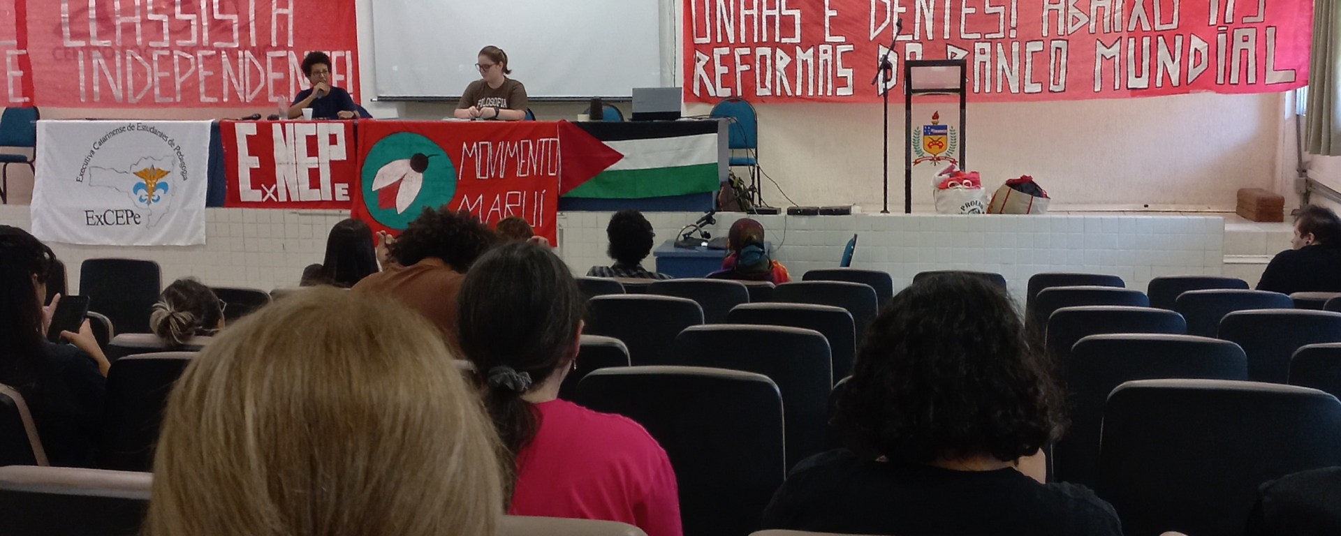 O evento se iniciou com uma fala do representante do Movimento Maruí, que leu uma nota da Comissão de Fundação da ExCEPe, saudando o evento e relatando as recentes mobilizações estudantis na Universidade Federal da Fronteira Sul – Campus Chapecó –, reiterando o papel central do movimento estudantil independente e combativo para fazer avançar a tática da greve de ocupação em defesa dos direitos estudantis.