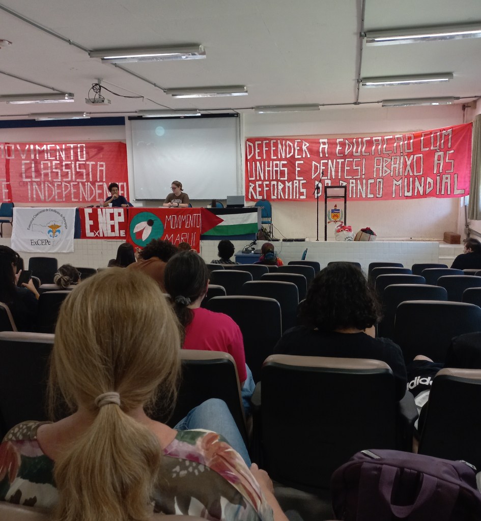 Após as falas, foi exibido um vídeo sobre o histórico recente de lutas da ExNEPe e aberto um espaço para questionamentos do público. As perguntas abordaram a atuação da Executiva nos cursos de pós-graduação, as disputas e debates na definição da linha política da ExNEPe, o papel do oportunismo da falsa esquerda nas mobilizações estudantis e os desafios da organização estudantil independente.