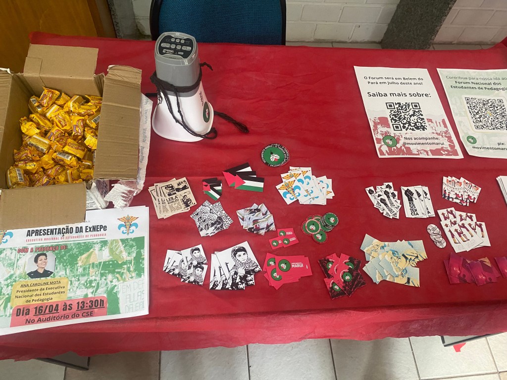 Ao saírem, os presentes passaram pelas banquinhas, tanto do Jornal A Nova Democracia quanto do Movimento Maruí, que distribuiu seu jornal estudantil Tarrafa de Luta e seu texto de princípios “O Que Te Impede de Lutar?“. Também foram vendidos adesivos, paçocas, chá e café para o autofinanciamento do Movimento.