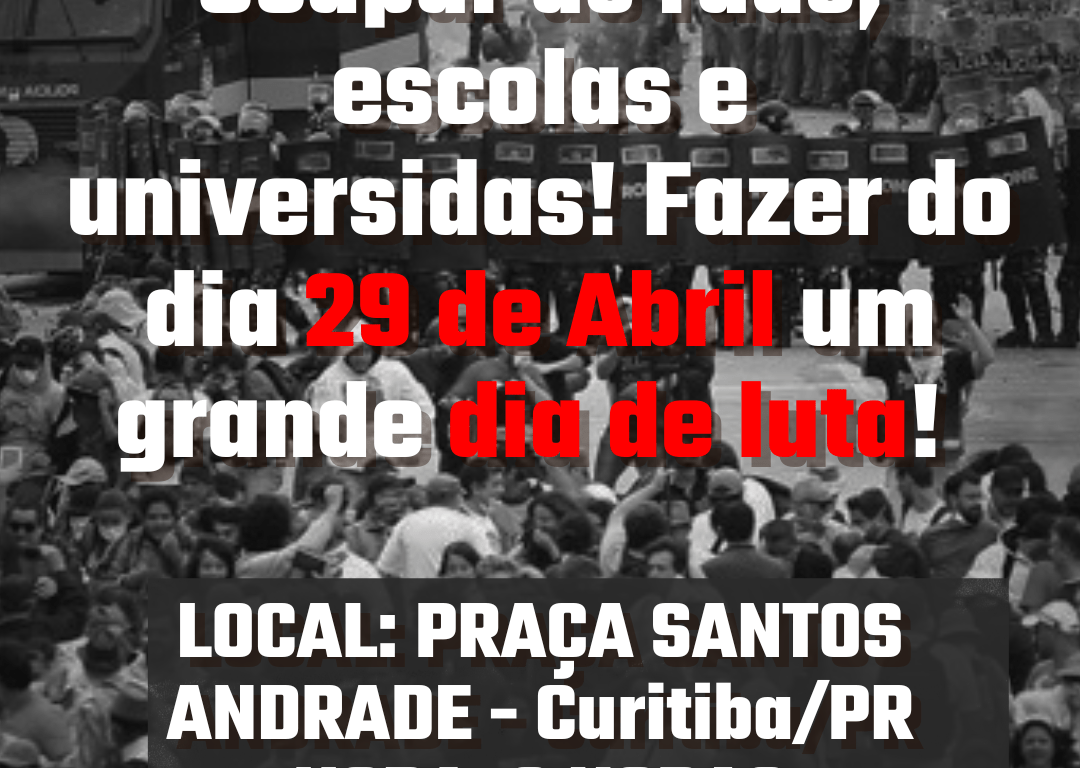 Como forma de reverenciar a memória deste importante dia e daqueles que bravamente cerraram fileiras contra todo o aparato militar deste velho e reacionário Estado, assim como de pautar as justas demandas da categoria, como o pagamento do piso do magistério, os educadores da rede estadual aprovaram a realização de uma paralisação para o dia 29 de abril. Também convocaram uma grande manifestação em Curitiba, que ocorrerá às 9 horas, na Praça Santos Andrade, e seguirá em marcha até o Centro Cívico. Outras ações estão sendo organizadas em diferentes municípios, como em Maringá, onde diversas entidades democráticas, entre elas, o DCE da UEM e o Comitê de Luta Contra a Privatização – Maringá, têm se somado à mobilização.