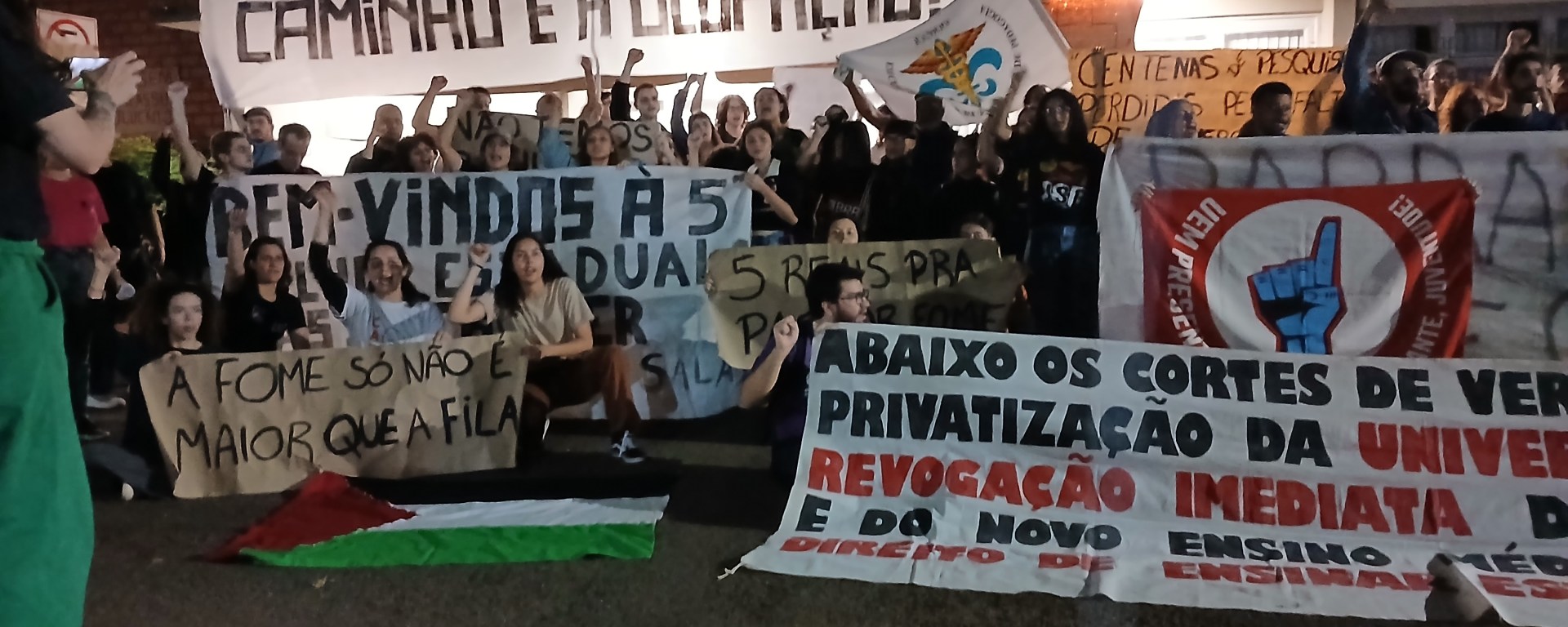 Os estudantes lutam por melhorias na universidade para poderem estudar, ensinar e pesquisar. A greve com ocupação é a tática mais justa e avançada do movimento estudantil, e, em âmbito nacional, tem obtido resultados concretos. Cabe aos estudantes tomar em suas mãos o futuro da educação pública e gratuita. Com greve de ocupação, barrar as privatizações!