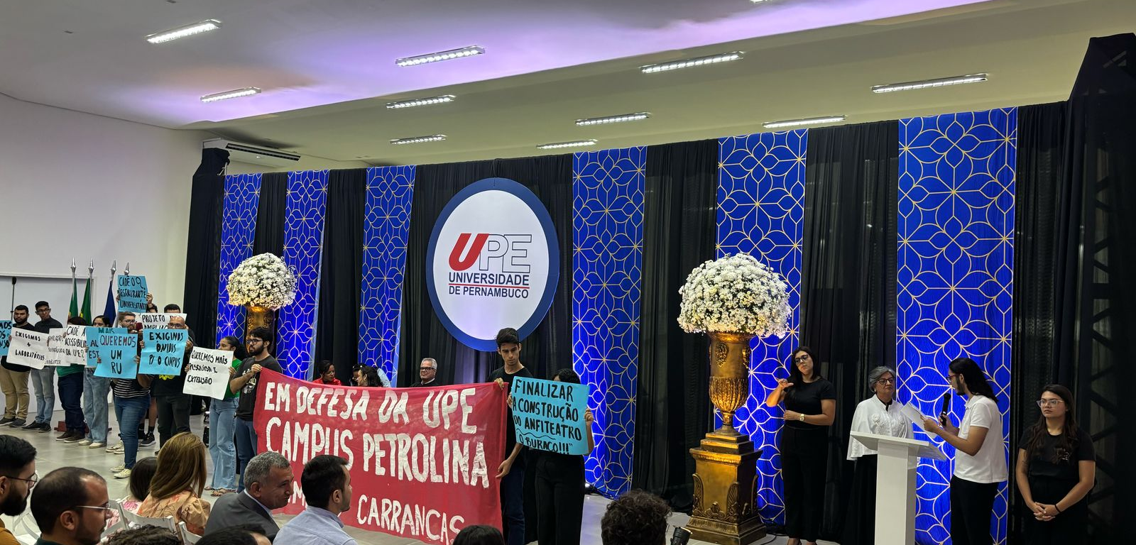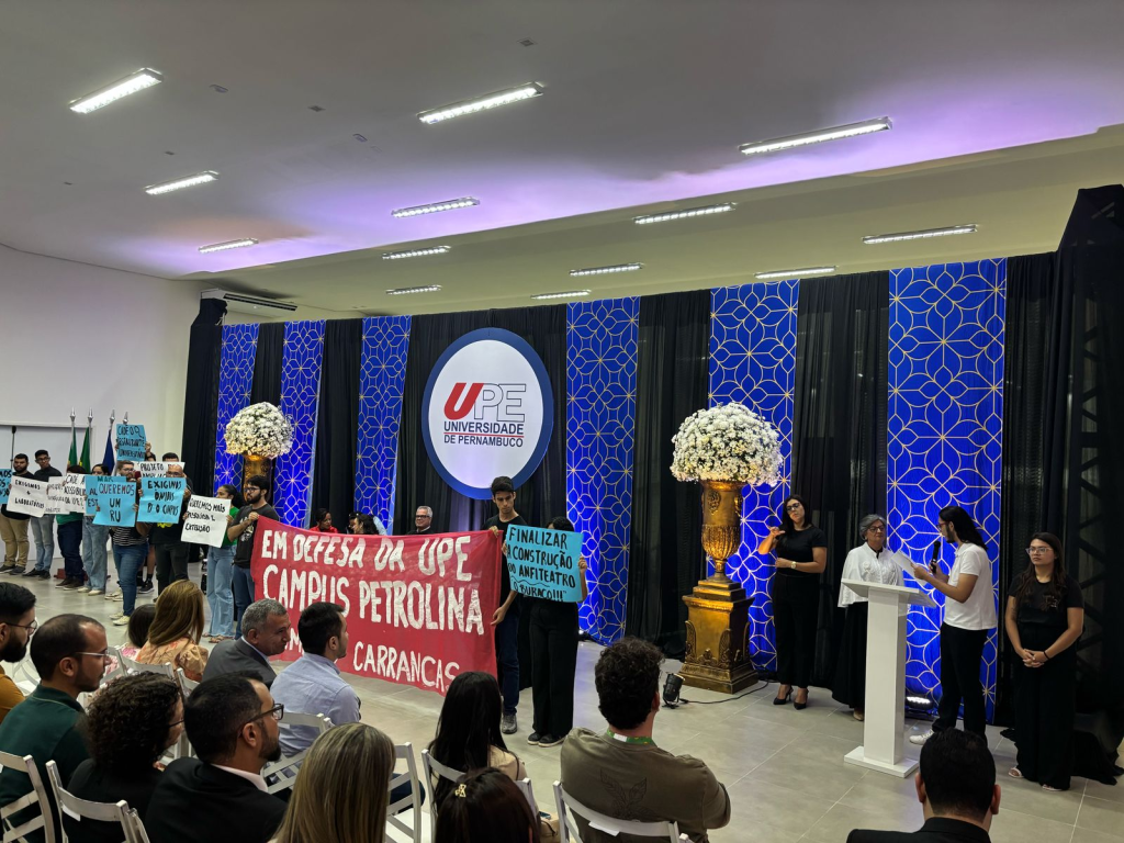 No dia 25 de abril, estudantes do movimento estudantil Carrancas desafiaram a segurança da aristocracia universitária e protestaram contra a precarização da Universidade de Pernambuco (UPE) em meio à cerimônia de solenidade de posse da nova diretoria da instituição. O momento foi escolhido a dedo pelos estudantes por conta da presença da reitora da UPE e de outras universidades da região, da gerente regional de Educação de Petrolina, de gestores municipais e de professores e outros convidados.