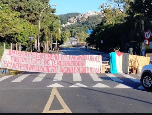 Estudantes da Universidade Federal de Santa Catarina (UFSC) fizeram uma paralisação no dia 29 de abril contra a demissão em massa dos trabalhadores terceirizados da universidade. A demissão foi anunciada pela reitoria como parte da política de corte de gastos.