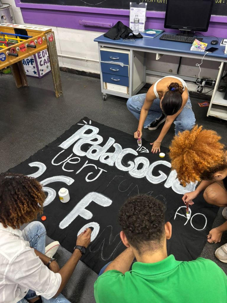 Nesta quarta-feira 22/05, os estudantes de Pedagogia da Universidade do Estado do Rio de Janeiro (UERJ) demonstraram seu entusiasmo e engajamento ao se mobilizarem para participar do Fórum Nacional das Entidades de Pedagogia (FONEPe). Com o objetivo de fortalecer a presença e a representatividade da comunidade acadêmica, os estudantes organizaram uma oficina especial dedicada à confecção de cartazes e faixas que serão utilizados na mobilização de outros estudantes do curso.