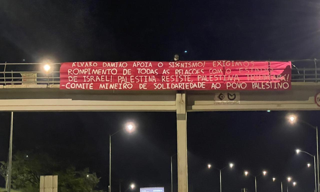 A Executiva Mineira de Estudantes de Pedagogia junto ao Comitê de Solidariedade ao Povo Palestino e secundaristas, produziram três faixas de 10 metros e hesteada em Lagoa Santa e Confins, no caminho para o aeroporto, denunciando a visita do prefeito Álvaro Damião a Israel que alegou ter sido convidado para um seminário sobre segurança pública e tecnologia.
