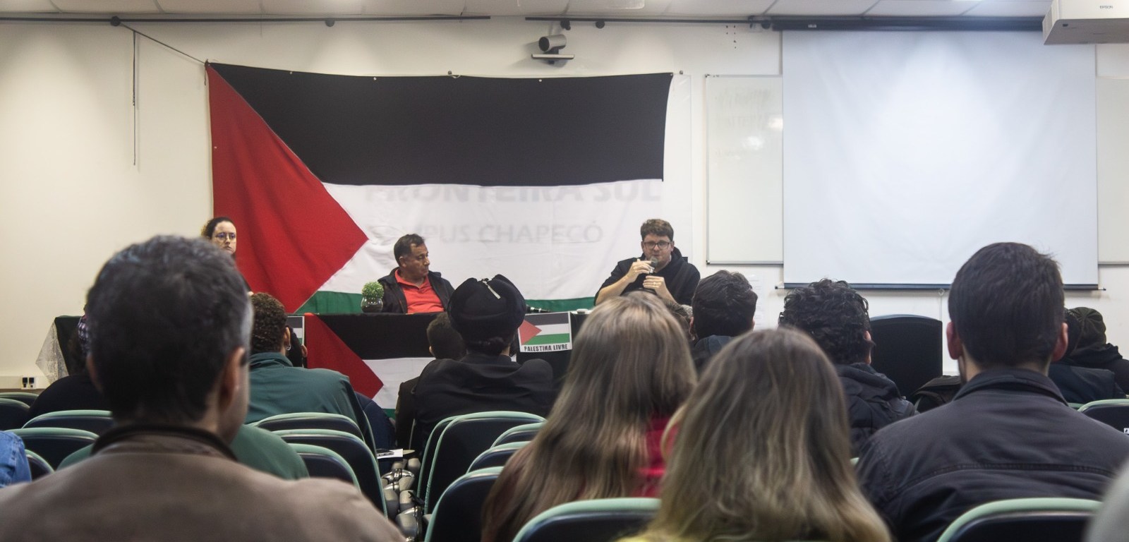 A Comissão de Fundação da Executiva Catarinense de Estudantes de Pedagogia (ExCEPe) junto ao Movimento Pela Libertação Palestina – Ghassan Kanafani, Comitê de Apoio do Jornal A Nova Democracia de Chapecó, SINDTAE, Humana Sebo e Livraria, Coletivo Estudantil Jataí e outras entidades realizaram um cine debate no dia 28 de maio de 2025 na UFFS – Campus Chapecó. O documentário passado foi “No Other Land” (Sem chão), que venceu o Oscar de Melhor Documentário de Longa-Metragem em 2025.