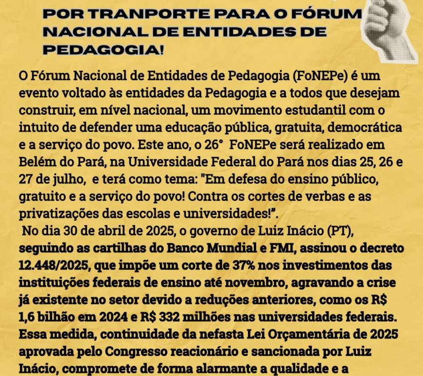 A Comissão de Fundação da Executiva Catarinense de Estudantes de Pedagogia (ExCEPe) junto ao Movimento Pela Libertação Palestina – Ghassan Kanafani, Comitê de Apoio do Jornal A Nova Democracia de Chapecó, SINDTAE, Humana Sebo e Livraria, Coletivo Estudantil Jataí e outras entidades realizaram um cine debate no dia 28 de maio de 2025 na UFFS – Campus Chapecó. O documentário passado foi “No Other Land” … Continuar lendo [SC] Comissão de Fundação da ExCEPe realiza cine-debate junto ao movimento pela libertação palestina – Ghassan Kanafani