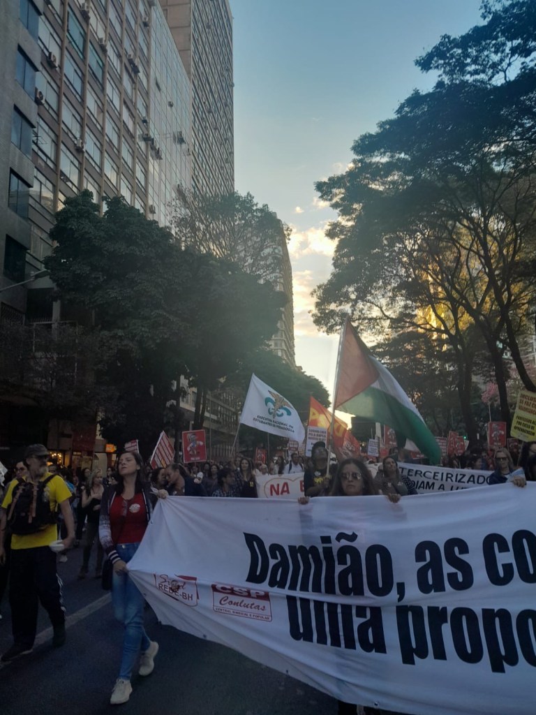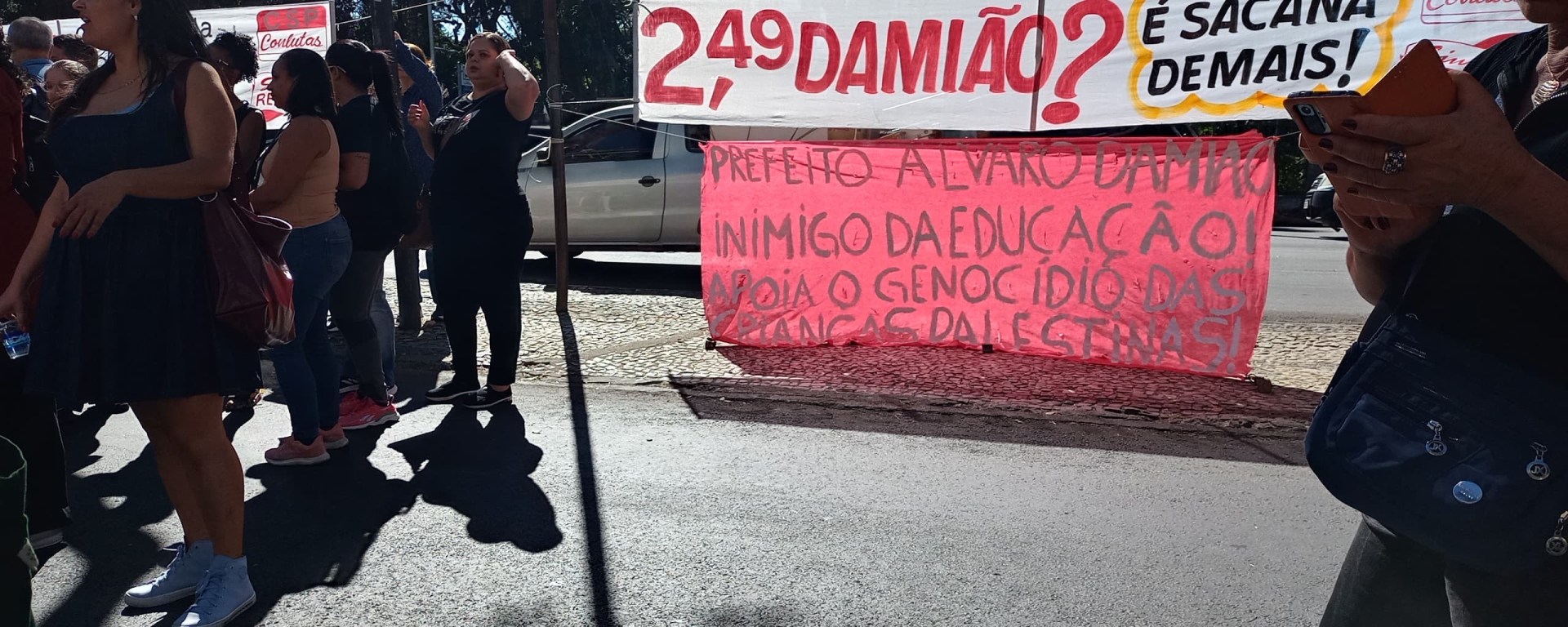 No dia 5 de junho, os professores da rede municipal de Belo Horizonte decidiram, em assembleia, entrar em greve por tempo indeterminado diante do reajuste de apenas 2,49% apresentado pela Prefeitura de Álvaro Damião — índice abaixo da inflação e do piso nacional. Desde então, já ocorreram seis assembleias, sendo a última no dia 1º de julho, realizada em frente ao prédio da Prefeitura, reunindo mais de 4 mil trabalhadores da rede. A greve já conta com quase 90% de adesão nas escolas municipais.