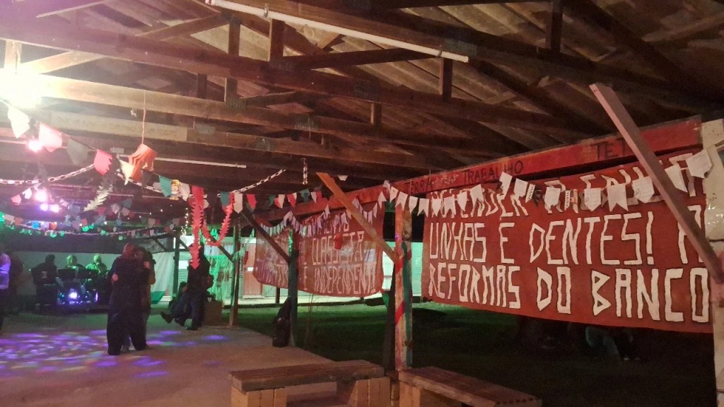 A atividade foi organizada com o objetivo de arrecadar fundos para viabilizar a ida dos estudantes da UFSC ao 26º Fórum Nacional das Entidades de Pedagogia (FoNEPe). Os estudantes conseguiram doações de alimentos e insumos necessários à realização da festa, além de terem feito toda a ornamentação do evento de forma independente. A decoração — incluindo a bandeira no palco, as cores das bandeirinhas juninas, faixas e iluminação — homenageava a luta do povo palestino. Ao redor do pavilhão, faixas com mensagens do movimento estudantil foram estendidas, com dizeres como: “Juventude palestina, sua luta continua na América Latina!”, “Viva o movimento estudantil classista, combativo e independente!”, “Defender a educação com unhas e dentes! Abaixo as reformas do Banco Mundial!” e “UNE governista, inimiga do povo!”.
