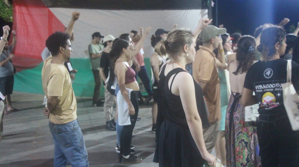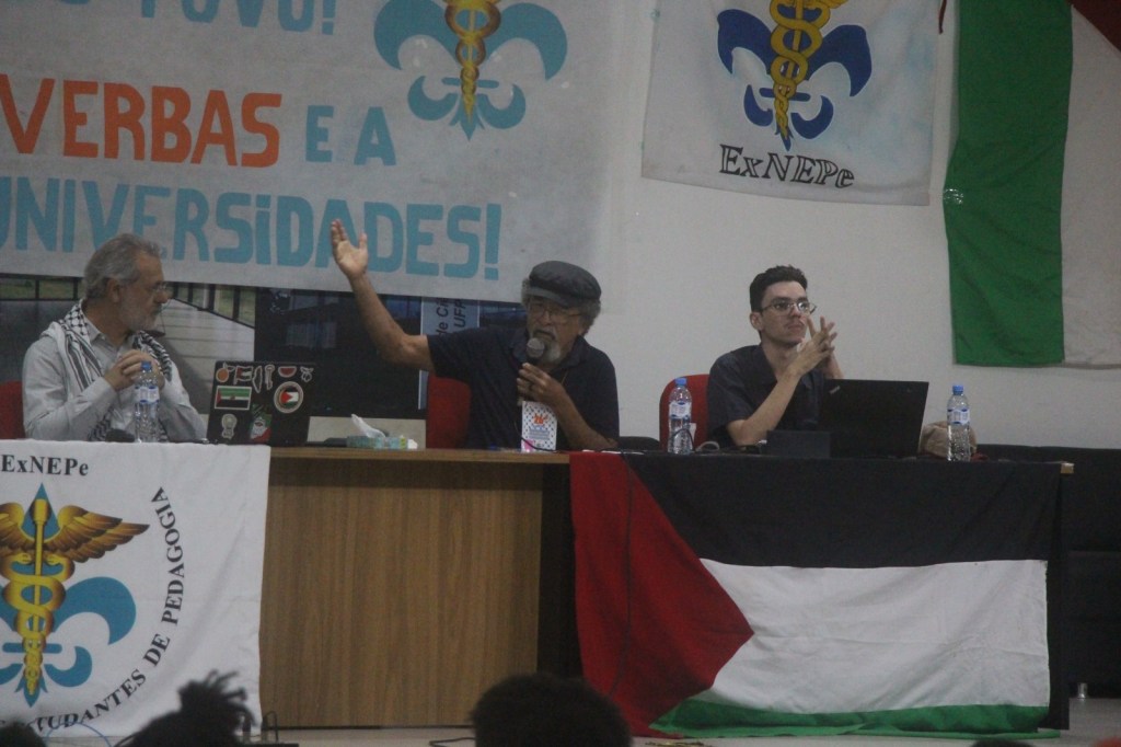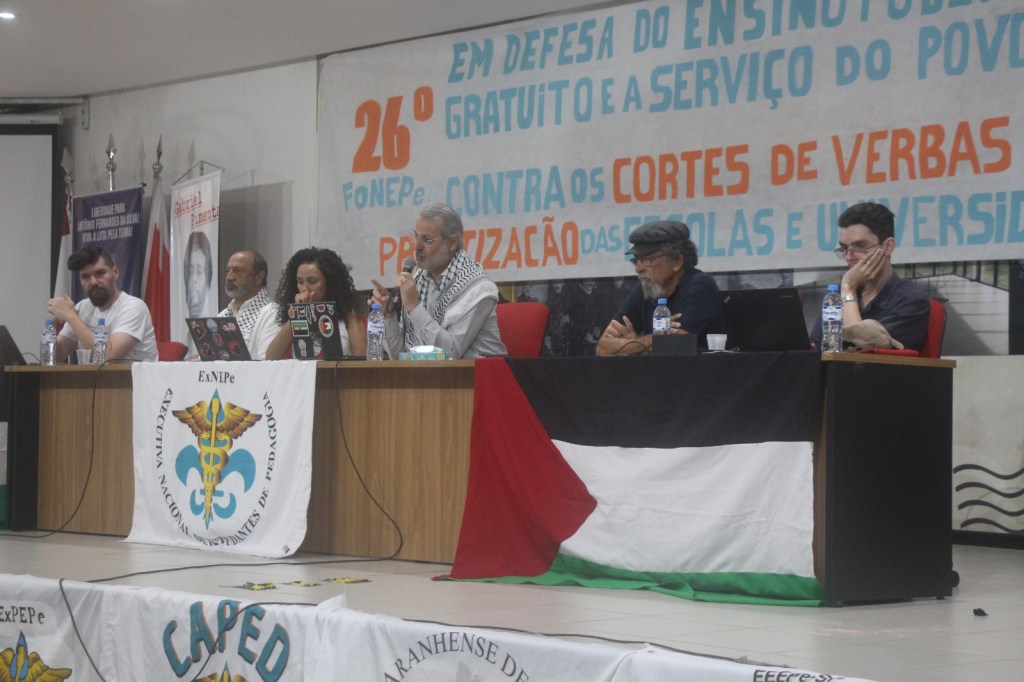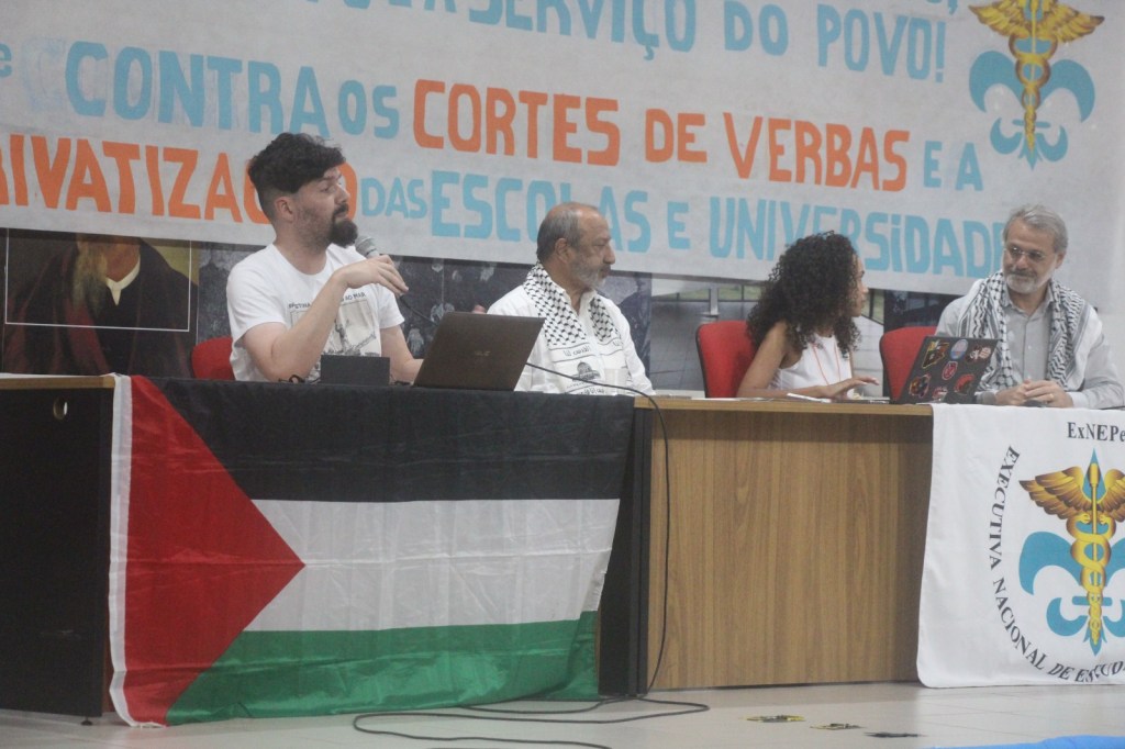 A mesa sobre a situação política reuniu falas contundentes de Ualid Rabah (FEPAL), Sayid Marcos Tenório (IBRASPAL), Victor Bellizia, João Carvalho e Raimundo Gomes. Os debatedores abordaram a situação política nacional, a luta pela terra e a resistência do povo palestino, conectando as pautas locais à luta internacional dos povos e nações oprimidos.