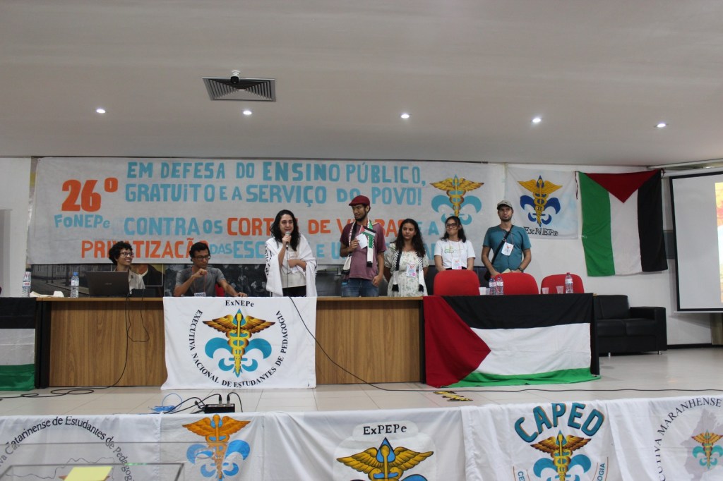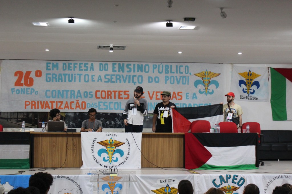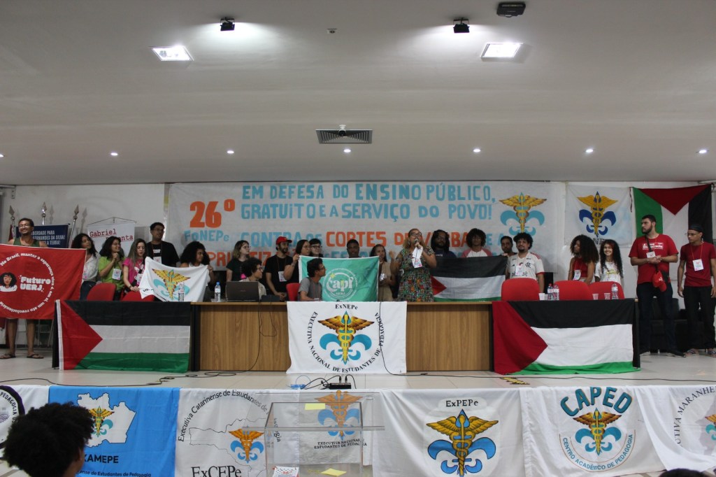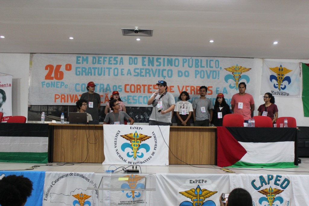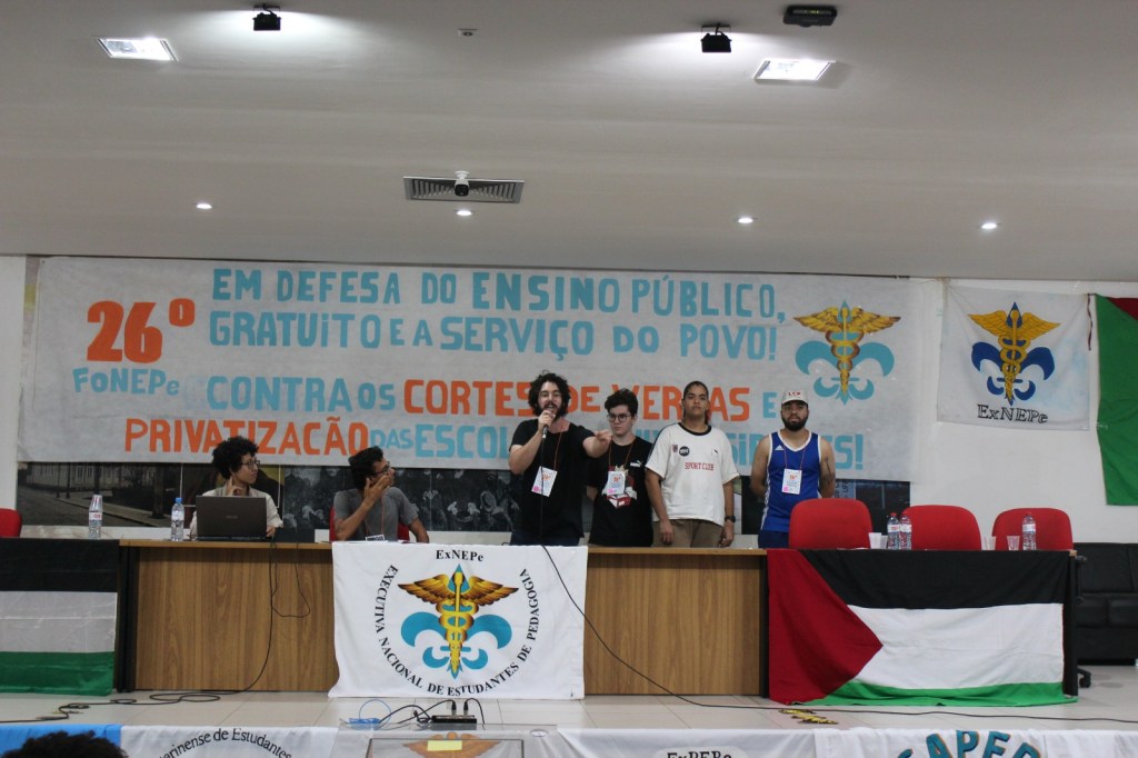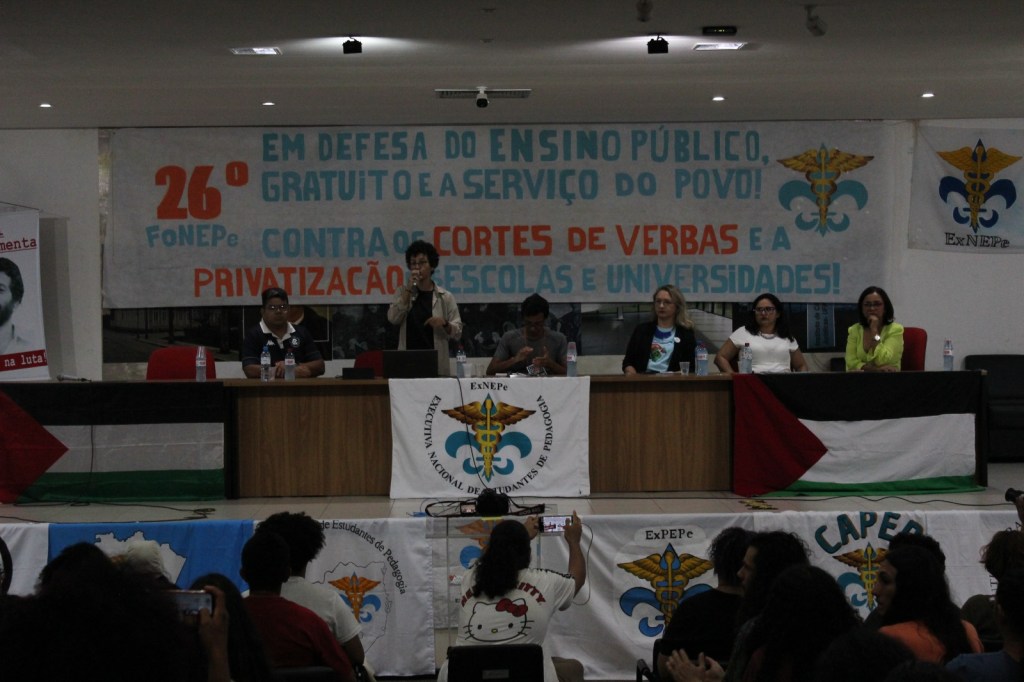 A mesa de abertura oficial do 26° FoNEPe contou com a presença de representantes de entidades e universidades comprometidas com a defesa da educação pública, gratuita e voltada às necessidades do povo. Participaram da mesa Hellen Araújo (ANFOPE), Eliana Felipe (UFPA), Isailma Barros (RePPed) e Antônio Seabra (SINTEPP), que trouxeram contribuições fundamentais sobre os desafios na formação docente, a importância da organização estudantil e a união como instrumento de luta por uma educação transformadora.