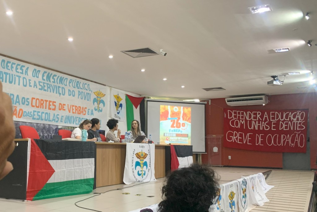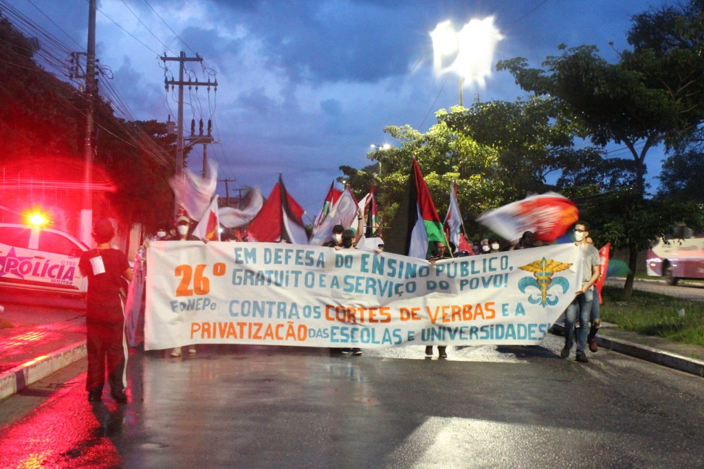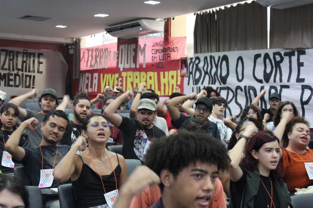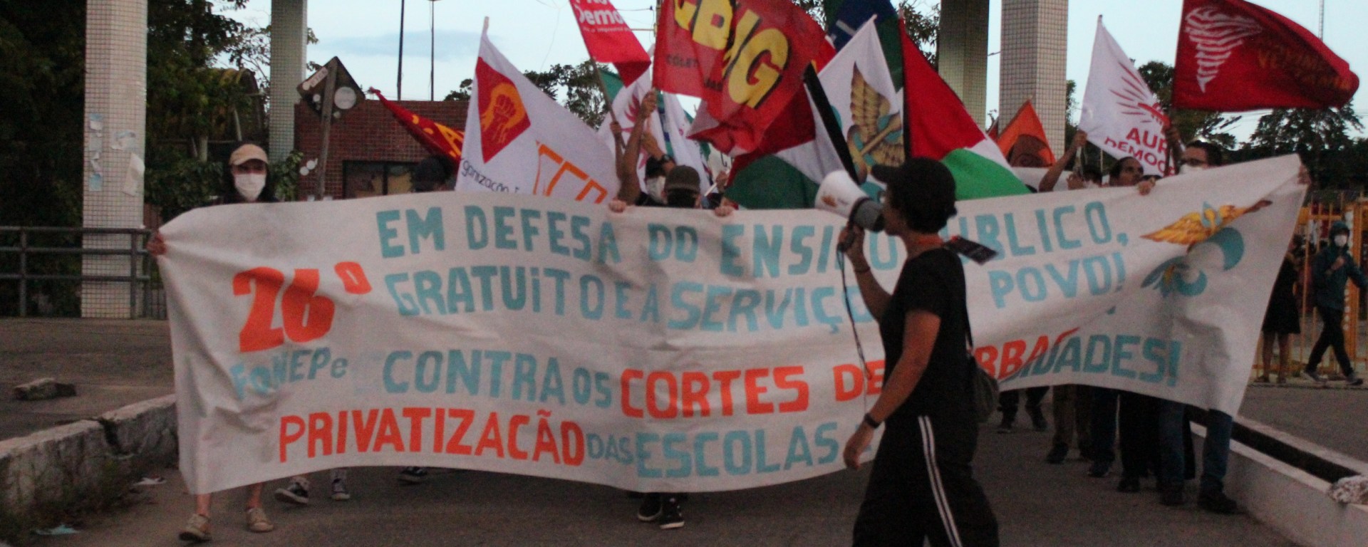 Mesa: “Em defesa do ensino público, gratuito e a serviço do povo! Contra os cortes de verbas e a privatização das escolas e universidades!”