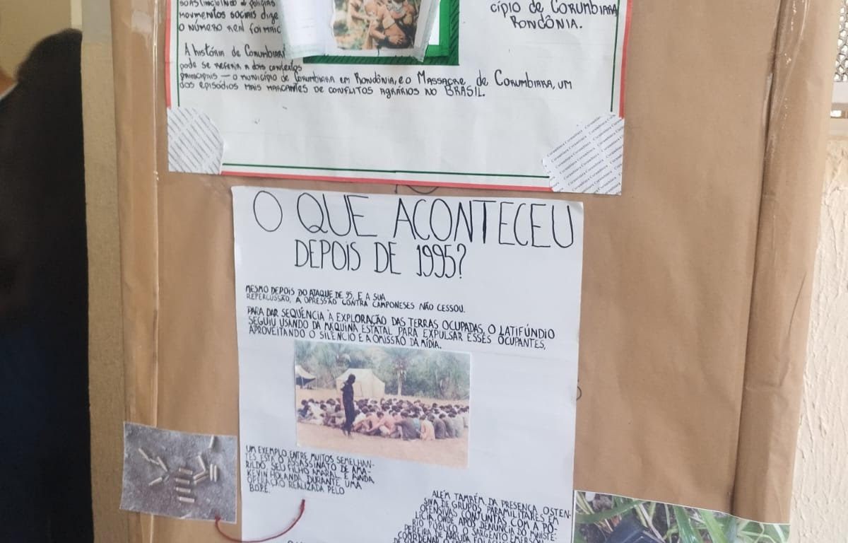 Estudantes do turno noturno da escola Machado de Assis (Vespasiano – MG) confeccionaram um mural em homenagem aos 30 anos da Batalha de Santa Elina. Os estudantes ficaram bastante interessados, e vários ficaram lendo durante o recreio as atividades.