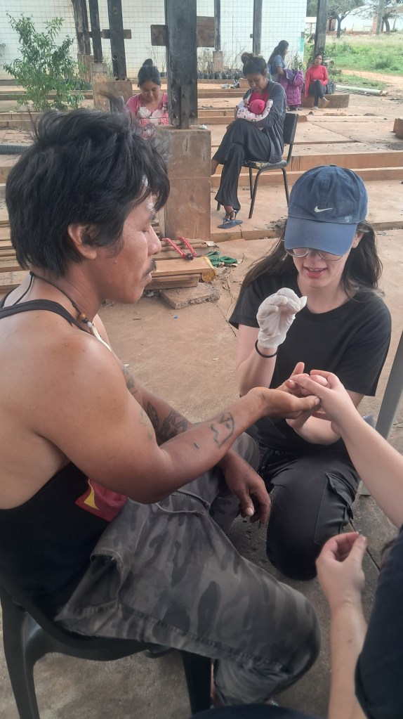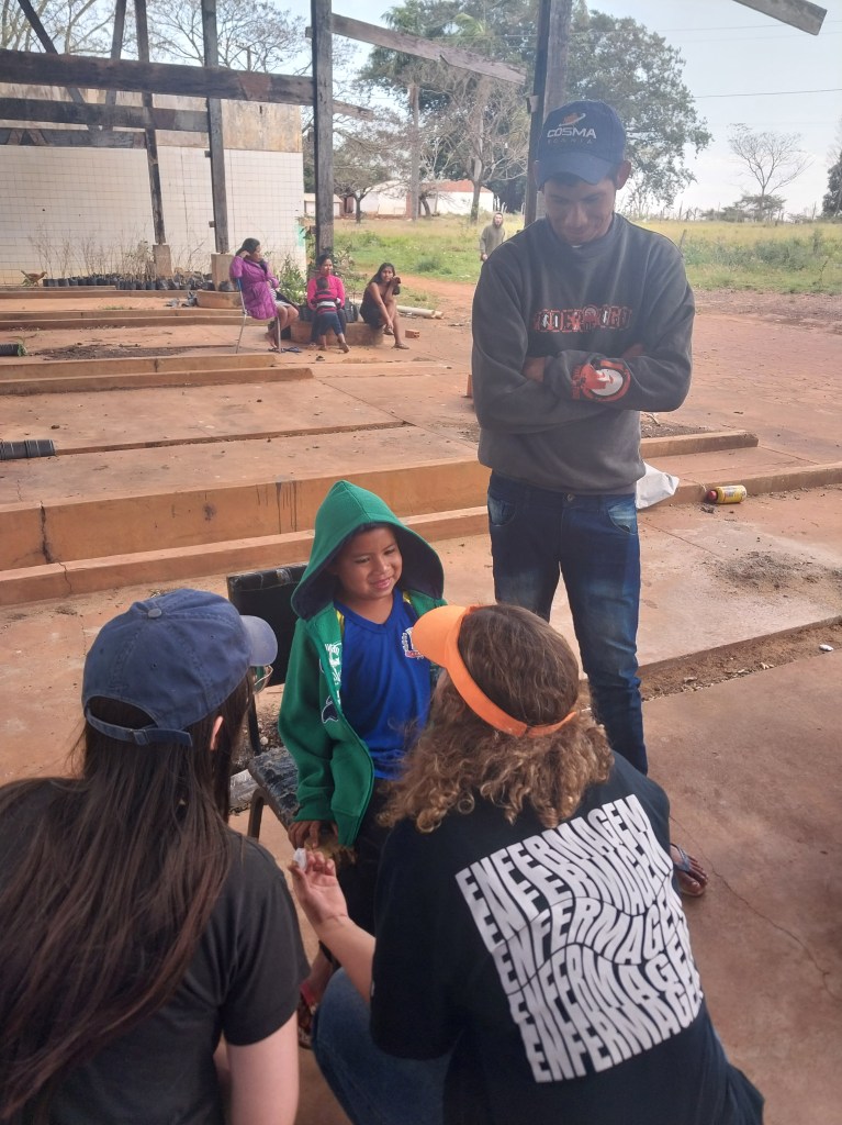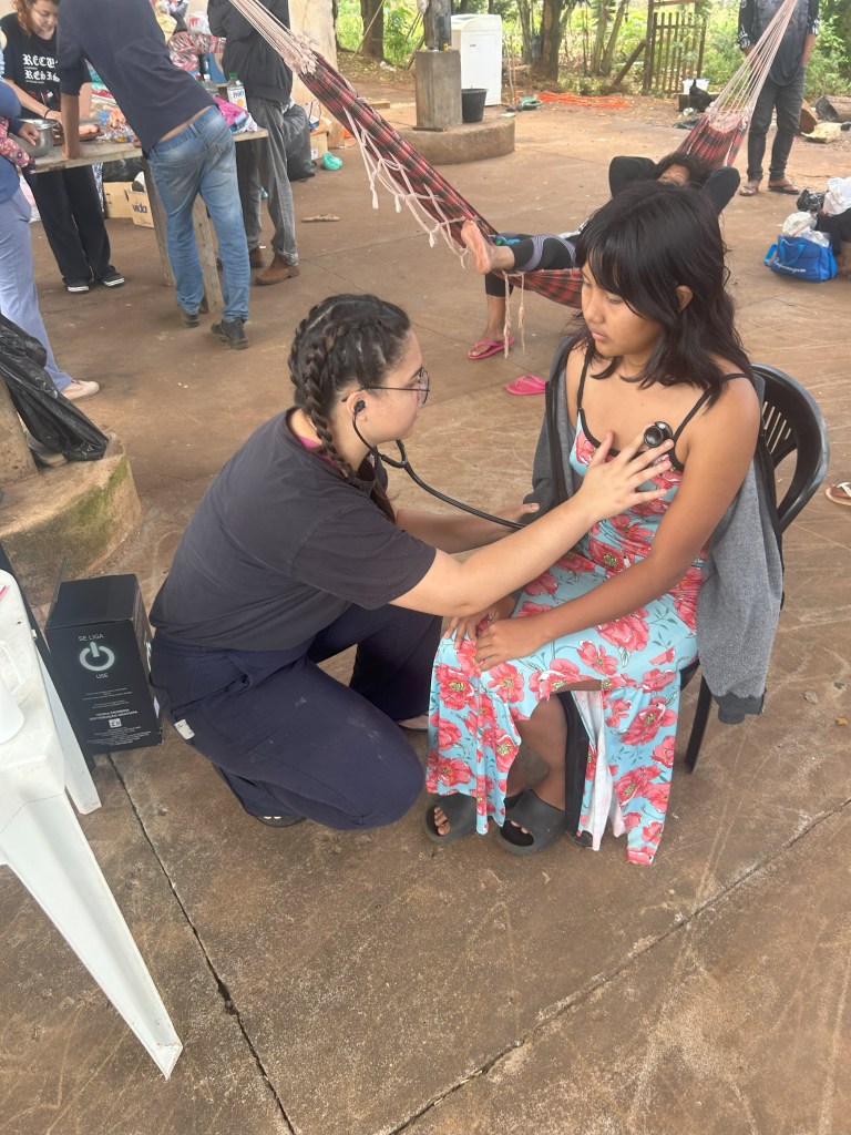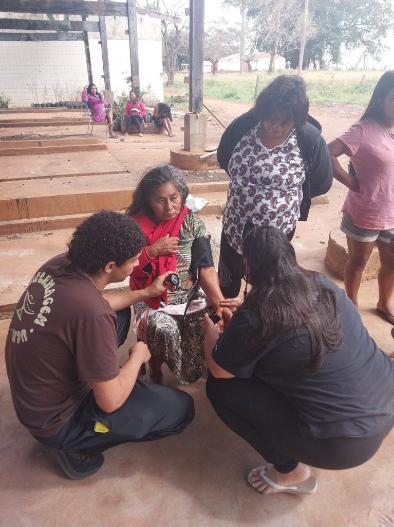 Durante a missão, estudantes de enfermagem e medicina realizaram cerca de cinquenta atendimentos, encaminhando duas senhoras com suspeita de AVC à UPA. Vale lembrar que a comunidade que possui cerca de 350 pessoas têm acesso a atendimento médico apenas uma vez por semana, por apenas uma hora. É a política da omissão planejada, que nega saúde para acelerar a morte indígena.