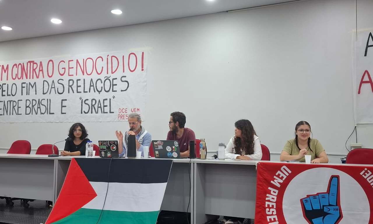 Reconhecido nacionalmente pelo seu ativismo em defesa da causa palestina, Ualid Rabah é formado em Direito pela própria UEM. Durante a palestra, destacou a importância que o movimento estudantil teve em sua formação política e elogiou a iniciativa dos estudantes em promover o debate dentro da universidade. A fala de Rabah abordou a atual ofensiva israelense sobre a Faixa de Gaza, apresentando diversos dados. Destacou o número alarmante de mais de 22 mil crianças palestinas mortas ou desaparecidas em dois anos de conflito. Também foi apontado o assassinato de jornalistas: Cinco jornalistas do portal Al Jazeera foram executados por Israel e segundo organizações internacionais, 200 comunicadores já foram mortos.