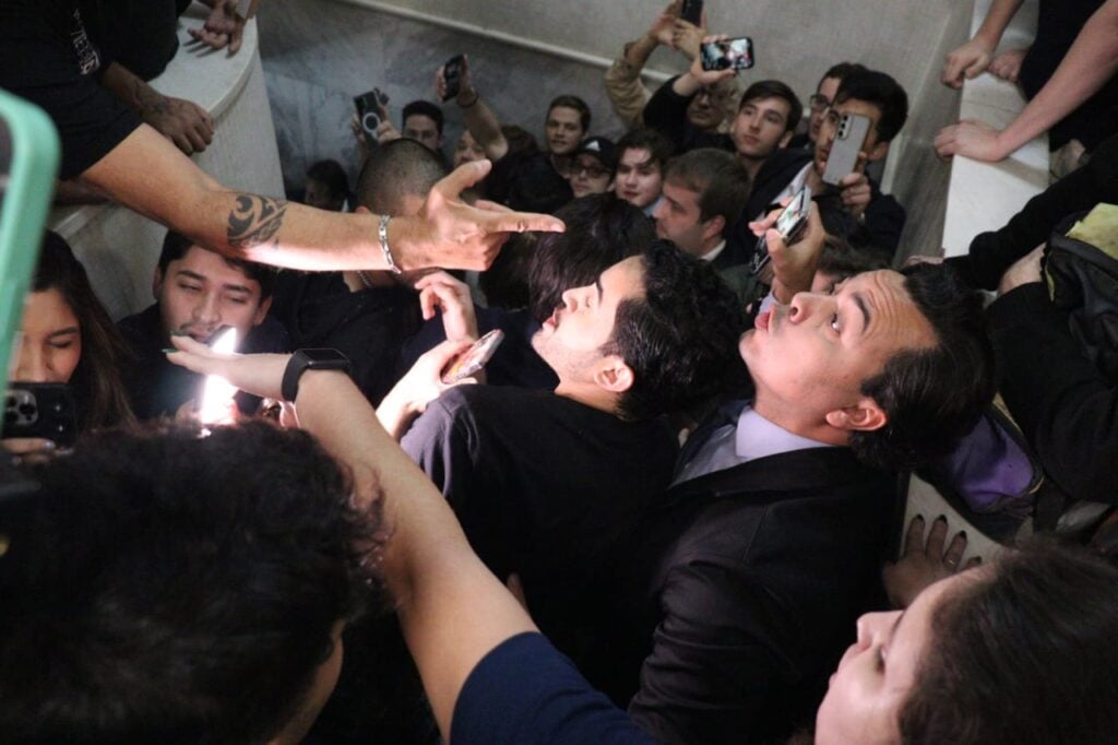 Iniciada a concentração, os estudantes se deslocaram para frente do Salão Nobre do Departamento de Direito, onde seria realizada a palestra. Diante da quantidade de estudantes e sob palavras de ordem como “Recua, fascista, recua” e “Ô Bolsonaro, seu fascistinha, os estudantes vão colocar você na linha”, recebeu-se a notícia de que a palestra havia sido cancelada.