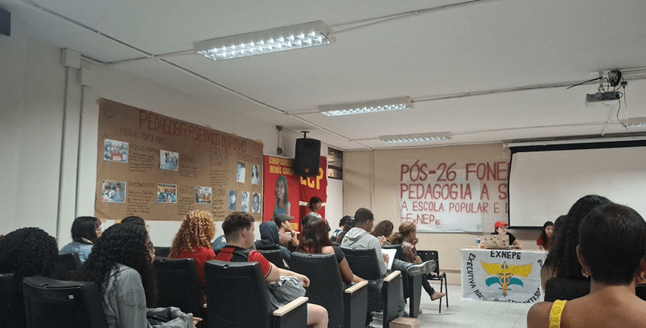 Com também objetivo de repassar para os estudantes os temas abordados no 26° FoNEPe, que aconteceu em Belém do Pará, a palestra no anfiteatro do Centro de Educação reuniu diversos estudantes – secundaristas, discentes de Pedagogia e de diversas outras áreas, como Ciências da Computação e Arqueologia. O interesse dos estudantes em participar do evento ficou evidente tanto durante as passagens em sala com panfletagem quanto pelo número de respostas ao formulário de inscrição, mesmo no turno da noite.