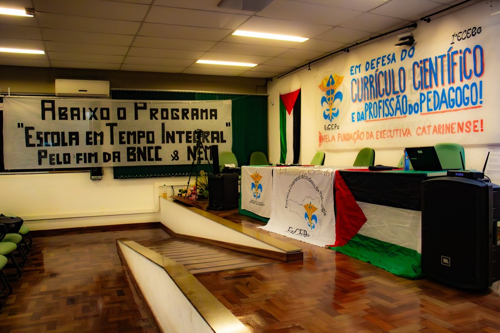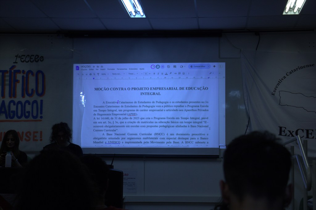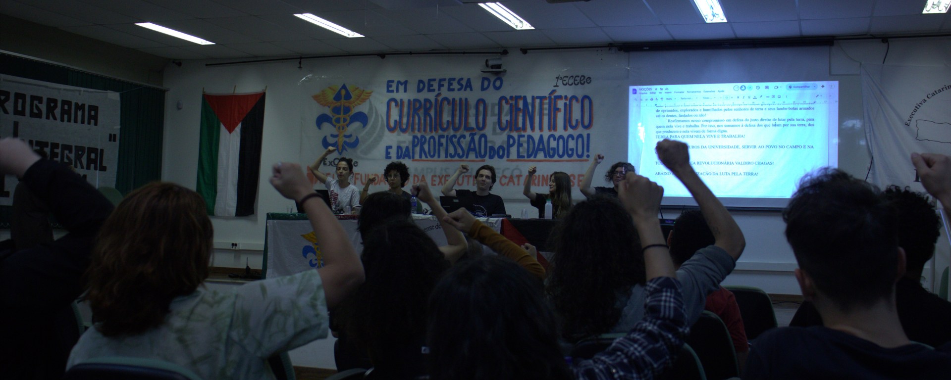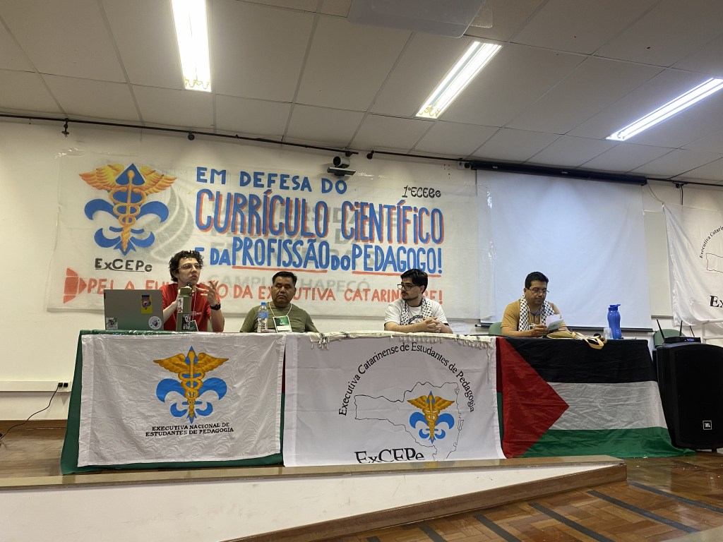A Executiva Catarinense de Estudantes de Pedagogia (ExCEPe) junto aos estudantes reunidos no 1˚ Encontro Catarinense de Estudantes de Pedagogia (ECEPe) nos dias 24 e 25 de outubro de 2025, na Universidade Federal da Fronteira Sul campus Chapecó reafirmamos nossa defesa do currículo científico e da profissão do pedagogo comprometida com a classe trabalhadora.