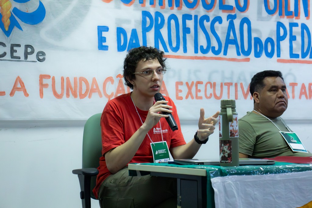 A Ana reforçou a importância da Pedagogia como ciência, curso e profissão, apontando a Base Nacional Comum de Formação (BNC-Formação) como um instrumento de esvaziamento da formação científica e defendendo a necessidade de luta coletiva contra o avanço do projeto empresarial na educação.