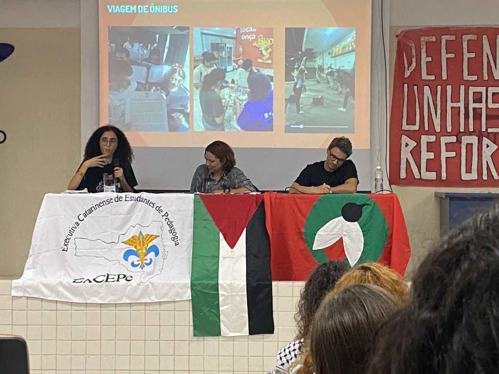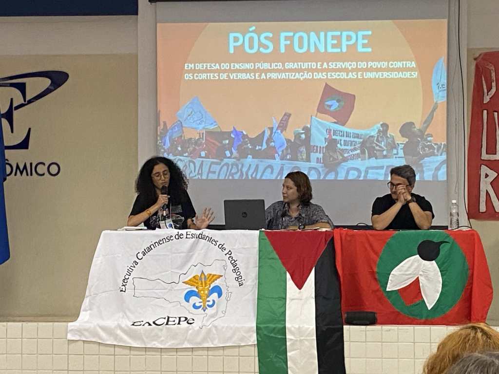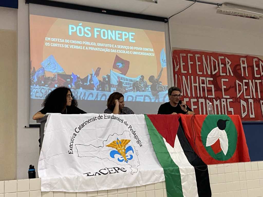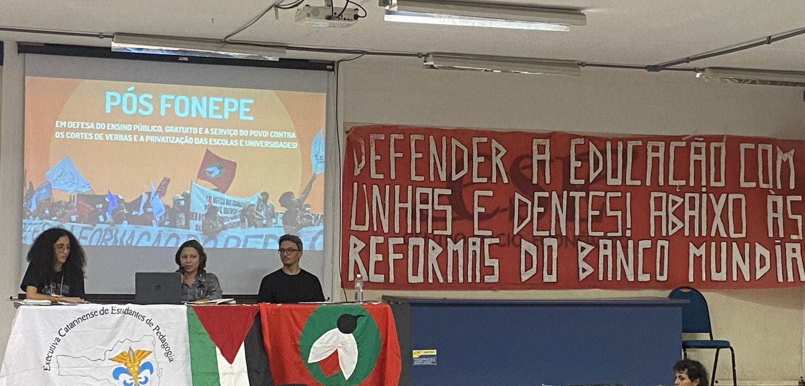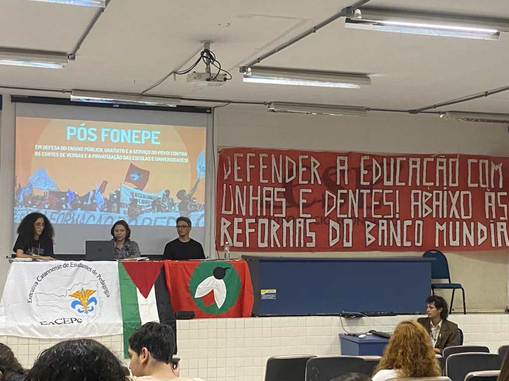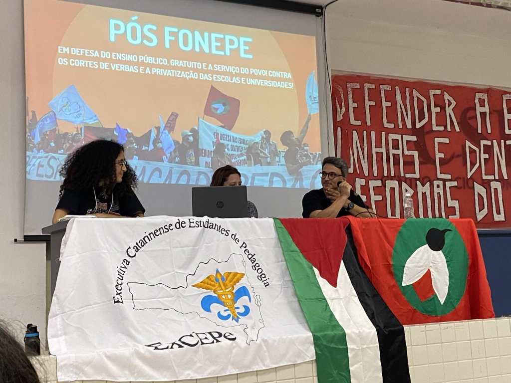 Membros da Executiva Catarinense de Estudantes de Pedagogia (ExCEPe) e do Movimento Maruí, realizaram no dia 01/10, um vitorioso Pós-FoNEPe no Auditório do Centro Socioeconômico (CSE), na UFSC. O evento contou com a fala de uma estudante de filosofia que participou do FoNEPe e relatou sua experiência no evento, bem como com a fala do professor, assistente social, mestre em educação e doutor em Serviço Social Claudemir Osmar da Silva, dezenas de estudantes independentes participaram do evento.