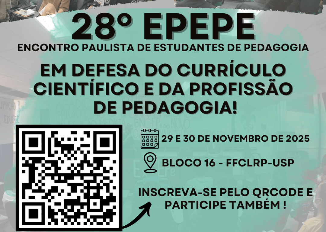 A Executiva Estadual de Estudantes de Pedagogia de São Paulo (EEEPe-SP) convida todos os estudantes de Pedagogia e Licenciatura, Centros Acadêmicos, secundaristas, grêmios estudantis, professores e ativistas de todo o estado para o, desde já, vitorioso 28° Encontro Paulista de Estudantes de Pedagogia (EPEPe)!