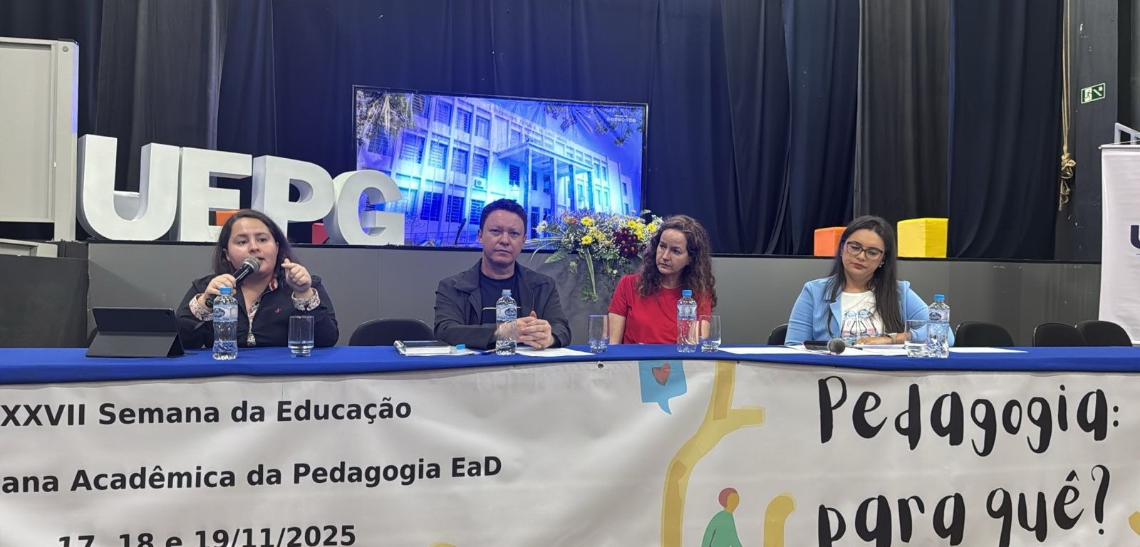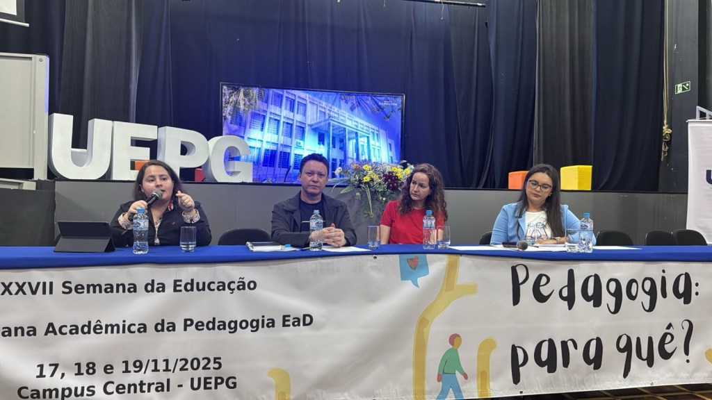 No último dia 17 de novembro, a Executiva Paranaense de Estudantes de Pedagogia (ExPEPe) participou da mesa de abertura da Semana da Educação da UEPG. A mesa tinha como tema “Pedagogia para que?” e contou teve a participação de dois professores do Fórum Paranaense dos Cursos de Pedagogia (FORPPED), que trataram sobre adoecimento docente, explicaram sobre a pedagogia histórico-crítica e deram um apanhado a respeito de concepções teóricas da Pedagogia.