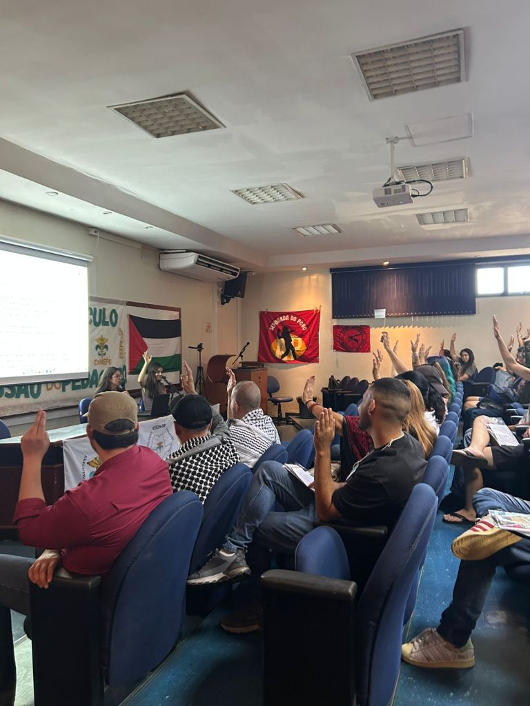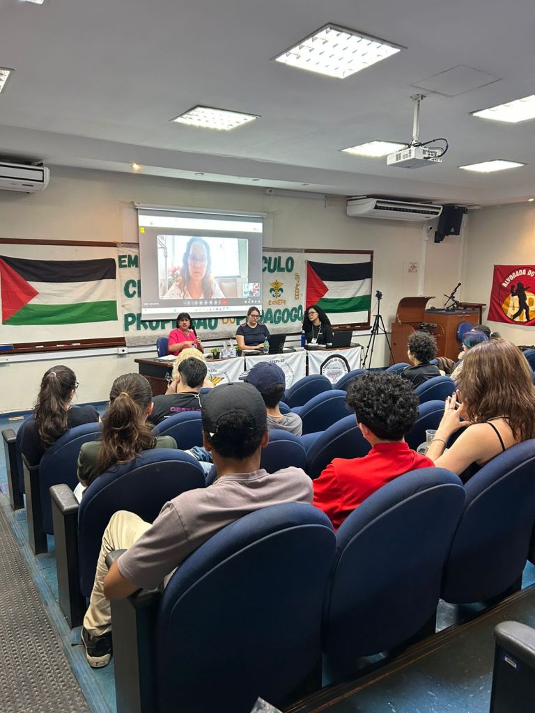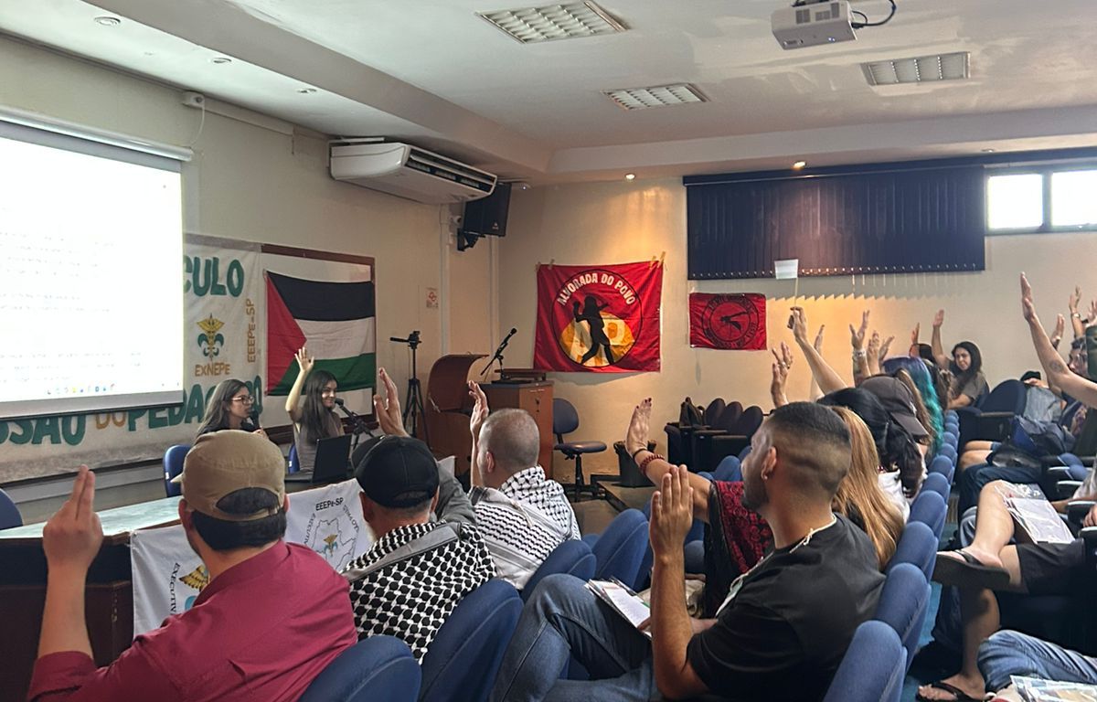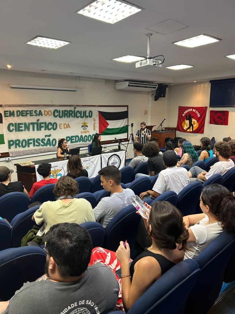Desde essa moção, convocamos todos os estudantes a fazer debates, palestras, cine-debates, confecções de murais e cartazes para seguirmos levantando alto a bandeira da Palestina nas escolas e universidades e reiteramos nosso repúdio à CONIB na posição de ouvidoria da USP por essas graves tentativas de intimidação dos apoiadores dessa causa legítima.