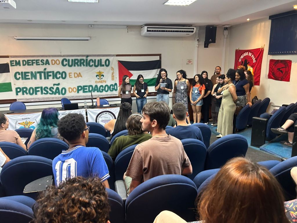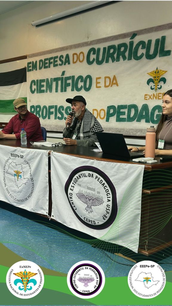 Na Mesa Principal, contamos com a presença da Profª Drª Noeli Prestes Padilha Rivas, a Profª Drª Sandra Garcia e a estudante Lola (Representando a ExNEPe). As convidadas discutiram a respeito da importância da defesa de um currículo científico na formação dos pedagogos e mencionaram os constantes ataques à educação pública, reafirmando a posição da Executiva Nacional em defesa de uma formação crítica e comprometida com as necessidades do povo.