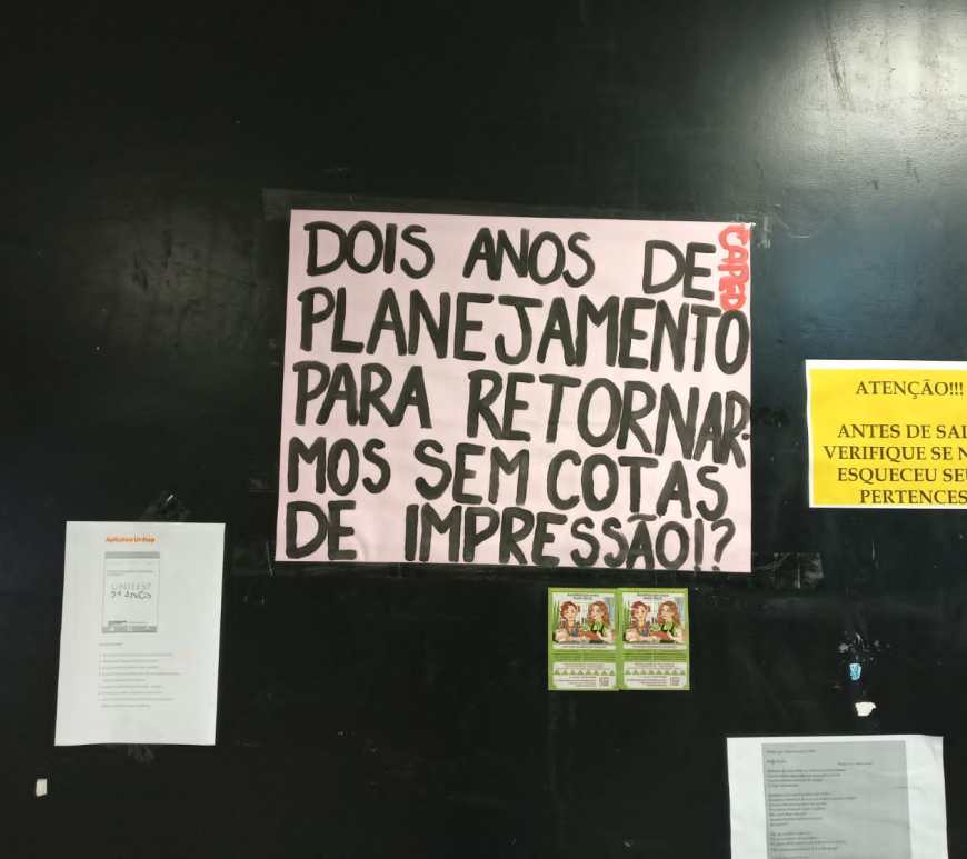 Na última terça-feira, estudantes da Universidade Federal de São Paulo (UNIFESP) em conjunto com Centro Acadêmico de Pedagogia Cecília Meireles Gestão E Vamos à Luta! organizaram uma confecção e colagem de cartazes pelo campus como forma de denunciar a precarização da universidade no retorno presencial. Desde que a universidade reabriu e as aulas presenciais retornaram os alunos se depararam com o laboratório fechado, sem computadores … Continuar lendo [SP] Estudantes fazem colagem de cartazes contra a precarização da universidade